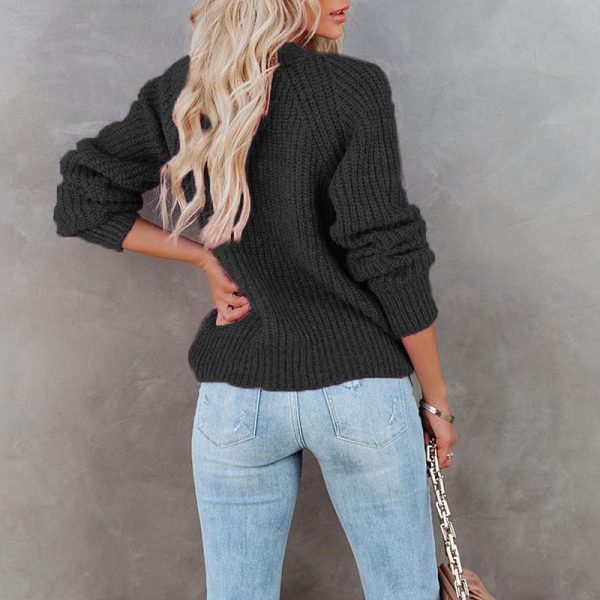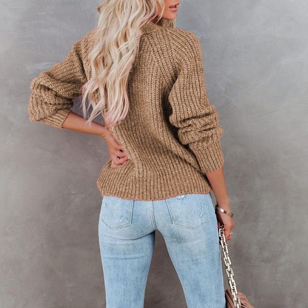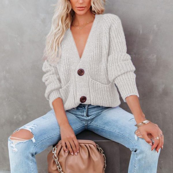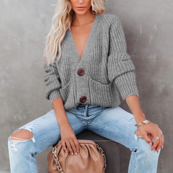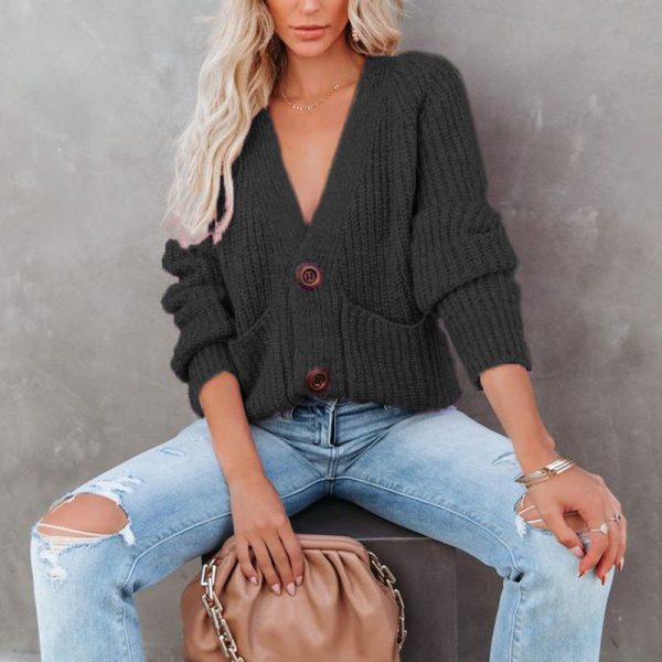 Casual Baggy Ribbed Knit V Neck Button Up Cardigan Sweater With Pocket quantity